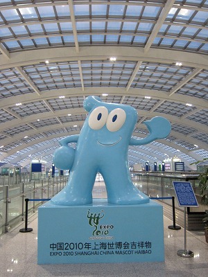 北京でも上海万博のマスコットが出迎える