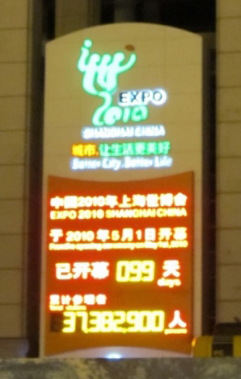 上海万博の開催日数と来場者数の看板が