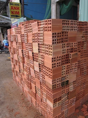 ホーチミンの工事現場で見かけるレンガ
